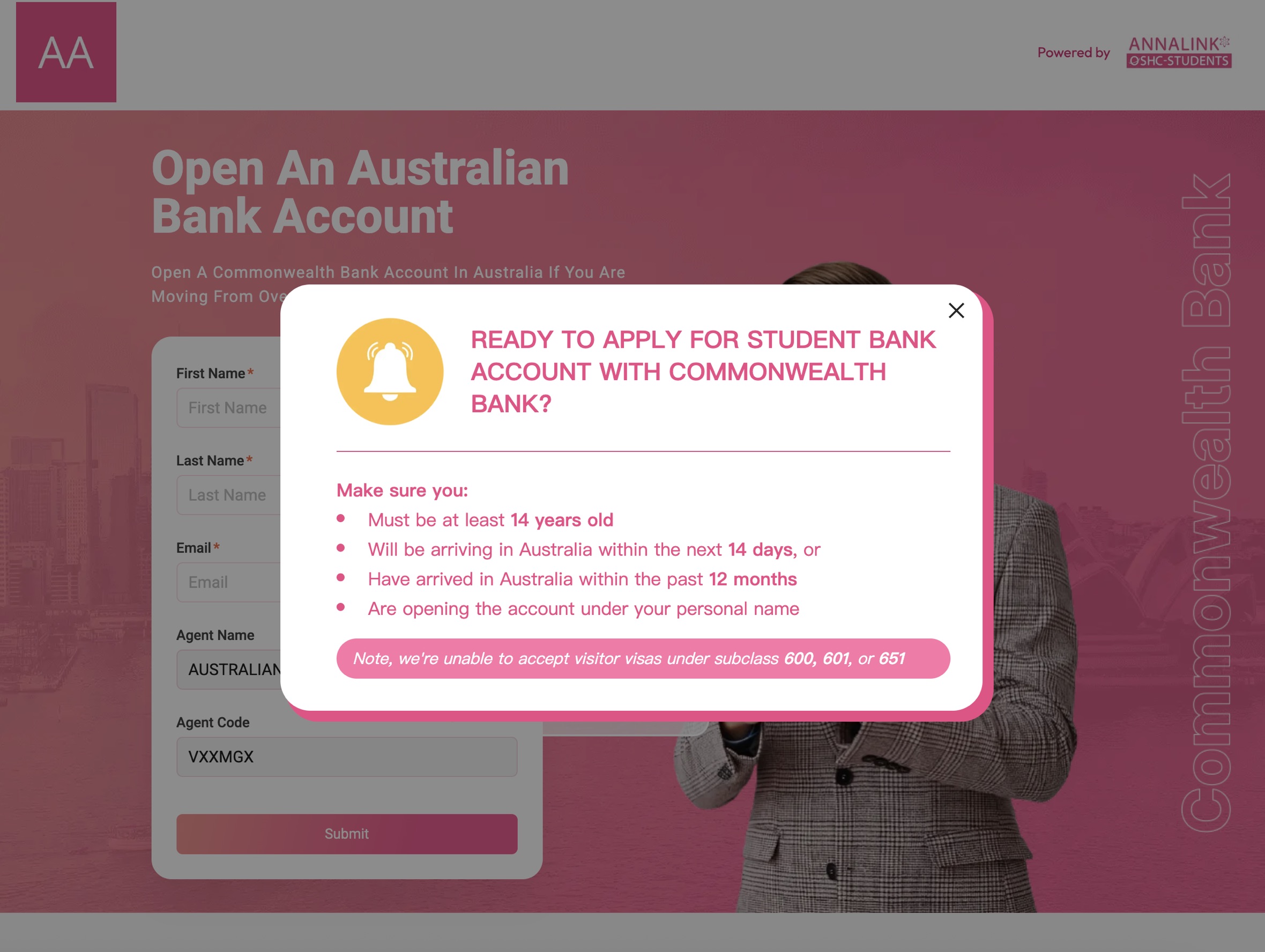 2. 在線填寫開戶申請表,提供個人資料及預計抵達澳洲的日期